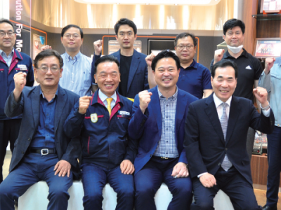 7월9일 부산경제진흥원 박기식 원장 일행이 당사를 방문했다. 이날 방문은 부산지역 우수중소기업 생산현장 시찰 및 경제침체로 인한 현장의 애로사항 청취, 실질적인 지원 방안 모색을 목적으로 마련되었다.오전 11시경 선보유니텍 구평1공장에 도착한 일행은 공장투어를 통해 고압 Compressor SKID 및 Re-Gasification Module을 둘러본 후, 선보공업 2공장으로 이동하여 LNG 연료공급장치와 재액화 장치(PRS, MRC3 등)에 대한 설명을 들었다. 친환경 시대를 대비해 선보가 마련해온 기술 및 미래 가능성을 호가인한 의미 있는 시간이었다. 이후 본사 홍보관에서 회사 소개를 듣고 점심식사 후 한 시간가량 티타임을 곁들인 간담회를 진행하였다. 이 자리에서 최금식 회장은 글로벌 경기침체로 생산현장에서 겪는 실질적인 애로사항을 전하는 한편, 정부 기관의 적극적인 지원을 요청하였다. 부산 지역의 중소상공인 및 중소기업 지원을 위해 설립된 부산경제진흥원의 이번 방문이 유의미한 지원으로 이어져, 경기침체에 빠진 생산현장에 활력을 불러일으키기를 기대한다.