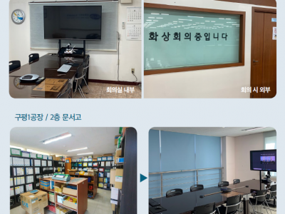 코로나19 팬데믹은 수많은 사망자 및 경제 침체로 전 세계를 충격에 빠뜨린 한편, 기존 생활 패턴을 뒤흔드는 일대 혁신을 불러일으켰다.실효성 면에서 아직은 낯설게 느껴지던 재택근무 및 화상회의와 같은 스마트 오피스 시대를 좀 더 일상적으로 받아들이게 된 것도 그중 하나이다.화상회의는 먼 곳에 있는 지사 직원이나 외근 중인 직원도 시 공간에 관계없이 참석할 수 있어 불필요한 이동 시간을 줄여준다. 뿐만 아니라 클라우 드 기반 화상회의 솔루션으로 회의 자료를 공유하고, 회의 내용에 대한 피드백을 즉시 반영할 수 있는 만큼 자료 인쇄나 공유 같은 번거로운 과정까지 줄일 수 있어, 직원이 업 무에 집중할 수 있는 시간을 늘릴 수 있다. 불필요한 출장을 줄여줌으로써 전반적인 원 가 절감 역시 가능하다. 최근 52시간 근무제 도입으로 업무 시간을 줄이면서 기존 수준 의 생산성을 유지하거나 높일 필요성이 커진 만큼 이러한 화상회의 도입은 기업 경쟁력 확보를 위해 필수적이다. 이처럼 중요성과 효율성 면에서 도입 필요성이 커졌지만 현실 적용까지는 시간이 걸렸던 것이 사실이다. SMART SUNBO TFT는 코로나19 팬데믹을 계기로 대면회의에서 비대면 회의로 빠르게 변화하는 회의문화에 발맞추어 화상회의실 을 구축하였다. 선보공업 첫 번째 화상회의실은 선보의 공장 중 가장 회의가 많이 열리는 본사와 구평 1공장에 마련되었다. 본사는 기존 상담실을 화상회의실로 바꾸었다. 화상회의를 위한 장비를 구입하고 가장 많이 이용하는 화상회의 프로그램에 각 공장별 계정을 생성하였 다. 외부 업체와 미팅 역시 많은 관계로, 블라인드와 가구도 통일하여 배치하였다. 구평 1공장 화상회의실은 회의 옆 품질문서고를 대상지로 정하고, 이를 정리하여 화상회의실 로 탈바꿈하였다. 기존 서류들을 정리하여 옮긴 뒤 본사와 동일한 장비, 블라인드, 가구 로 선보Family만의 통일성을 구축하였다. 급변하는 경영환경에 발맞추어 기존의 고정관념과 관행은 이제 버려야 할 때이다. 당 장은 조금 낯설고 어색하겠지만 이 같은 의미 있는 변화들은 미래시대를 대비한 선보의 자산이 될 것이다. 스마트 선보 TFT의 한 걸음 한 걸음을 응원한다.◇ 화상회의실 위치 : 본사 3층 상담실/구평1공장 2층 품질 문서고◇ 화상회의실 이용 예약 : ERP 회의실 예약 후 사용◇ ZOOM&SKYPE 계정 및 사용방법 : 각 화상회의실 책상 밑 매뉴얼 배치◇ 화상회의실 이용 TIP : 화상회의 시 블라인드를 내려 사용, 평소에는 블라인드 오픈하여 유지