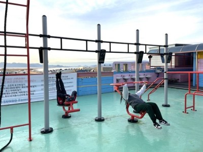 SUNBO Industres has created a new outdoor garden on the rooftop of its headquarters where employees can relax. As a result, the rooftop idle space, which remained vacant except for the wooden deck and smoking area, was transformed into a pleasant green space. The floor of the SUNBO was painted and decorated with the SUNBO alphabet (SUNBO) planted with artificial grass. On one side, there is a circular plant-shaped bench, a pull-up bar and Exercise facilities such as push-up bars , bench presses, and parallel bars were placed so that families could easily warm up or relax during break times. Overlooking Dadaepo Beach, Sunbo Industries' Daedae-1 Plant's rooftop outdoor garden is expected to enhance SunboFamily's relaxation satisfaction with its expansive ocean view and refreshing air.