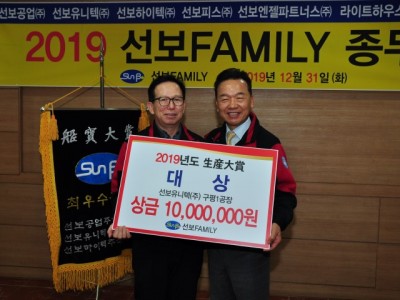 우리 회사는 매년 연말 종무식에서 끊임없는 노력을 통해 원가절감 및 생산성 향상, 고객 만족에 기여함으로써 선보를 빛내준 임직원들을 포상한다. 시상부문은 ▲원가절감 ▲ERP프로세스 ▲동반성장협력 ▲선보Unity ▲생산대상 등 8개 부문으로, 종무식에 참여한 선보가족은 각 수상자들이 호명될 때마다 마음을 모아 큰 박수로서 수상자들을 축하하였다. 2019년을 열정적으로 달려온 수상자들에게 축하를 전하며, 더욱 열정적으로 활약할 선보가족 모두의 2020년을 응원한다.