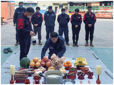 2월 1일 조선설계부는 다대포 해수욕장 낙조분수대에서 해신제를 개최하였다.해신제는 조선설계부가 매년 초 마련하는 안전기원 행사이다. 조선 설계부의 무사 안녕과 사업실적 100% 목표달성을 휘해 산에서 시산제를 올리기도 하고 바다에서 해신제를 시행하기도 한다. 해신제 장소인 몰운대에 모인 직원들은 정성을 다해 준비한 음식을 차려두고, 회사의 발전과 직원들 개개인의 발전을 위해 새로운 마음가짐으로 진심을 담아 제를 올렸다.