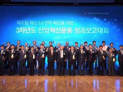 2016년 9월 28일(수)에 대한상공회의소 국제회의장에서 진행된 ‘3차년도 산업혁신운동 성과보고대회’에서 선보공업㈜은 우수모기업상 부문에서 산업통상자원부 장관 표창을 수상하였다. 선보공업㈜은 선박용 모듈 유니트 전문 생산회사로 탁월한 기술력을 바탕으로 창립 30년만에 3개의 법인과 8개의 공장을 가진 탄탄한 기업으로 성장하고 있는 부산지역의 대표적인 조선기자재 생산회사이다. 이번에 선보가 수상하게 된 산업혁신운동 부문은 산업통상자원부가 지원하고 대한상공회의소가 주관하는 동반성장 프로젝트의 일환으로서 2013년부터 시작되어 대기업과 1차협력사 중심의 동반상장을 2,3차 협력사로 점진적으로 확대해 중소기업 생산혁신을 지원하는 사업이다. 다시 말해 대기업 출연금을 통해서 2,3차 중소기업의 기술혁신과 작업환경 및 생산공정 개선을 지원하여 대기업과 중소기업의 동반성장을 유도하는 사업으로서 이번 3차년도에는 2,014개 기업이 참여하였다. 선보는 국내 대형 조선3사의 1차 협력사로서 안주하지 않고 자신들이 축적한 경험과 생산노하우를 2,3차 협력사와 공유하며 동반자로서 함께 성장해 나가고자 캠페인 및 기술지원에 적극 나서고 있고, 장기적으로 협력회사가 경쟁력을 갖추어 성장하고 창출된 수익을 상호공유할 수 있는 선순환을 지향하고 있다. 산업혁신운동 1차년도부터 지속적으로 매년 5개 이상 협력사를 참여시킨 1차 기업으로는 지금까지 선보가 유일하다. 선보는 활동에 필요한 자금지원과 협력사 현장방문을 통해 산업혁신 활동을 독려하고, 성공사례 공유 및 자체 보고회 개최 등을 통해 산업혁신운동 활동을 적극적으로 전개하고 있다. 이러한 노력의 결과로 이번 ‘3차년도 산업혁신운동’에서는 참여기업 모두 개선율 평균 75%, 목표달성율 평균 131% 이상의 높은 성과를 기록할 수 있었고 참여 협력사 중에 ㈜태송엔지니어링과 밸브텍코리아는 동반성장위원회위원장 표창을 함께 수상하는 영광을 얻었다.