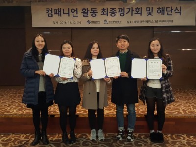 부산경제 진흥원으로부터 2016 기업 & 청년 컴패니언 프로그램 참여로 장려상 & 감사장 수여받음