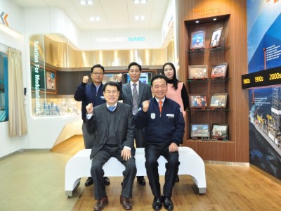 5월 23일 한국해양대학교 박한일 총장님 외 보직교수님 12명, 학과행정 임직원 8명 외 25여명은 우수중소기업 현장 탐방을 목적으로 선보를 방문하였습니다. 기업탐방단은 선보유니텍(주) 구평1공장에 도착하여 서재춘 전무, 서재욱 상무, 공성문 상무의 환영 및 인사로 일정을 시작하였습니다. 구평1공장에서는 스위스 고객사인 Burckhardt Compression로 발주받은 컴프레셔에 대한 현장 답사를 하고 나머지 대형모듈 유니트들은 차량으로 공장내부를 돌며 견학하였습니다. 이후, 선보유니텍(주) 구평공장으로 이동하여 강보영 상무의 환영과 함께 구평공장 제작품들을 견학하고, 선보공업(주)의 다대2공장으로 이동하여 클린공장 내부에 위치한 PRS 테스트 설비 등을 직접 시찰하였습니다. 마지막으로 본사에 도착한 탐방단은 본사내 위치한 홍보관 및 내부를 투어하면서 사업현황,인증서 및 수상현황, 월별게시판 등을 보며 선보의 사업 및 기업문화를 알수 있는 기회를 가졌습니다. 마지막으로 본사 설계실 및 기술연구소에 들린 탐방단은 해당 임직원들과 인사를 나누며, 박한일 총장님의 격려속에서 함께 한국의 조선 및 선박시장의 또다른 발돋움을 위하여 노력하자는 당부를 하고 탐방 마무리를 하였습니다.