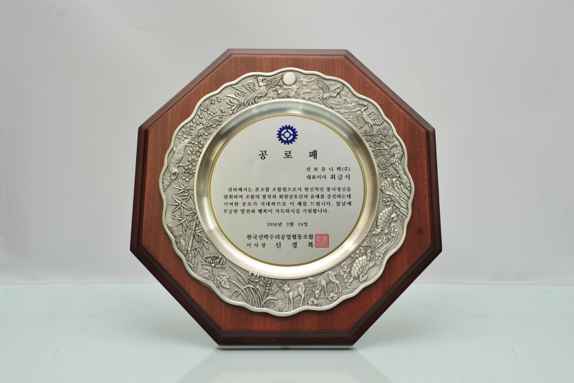 선보유니텍(주)는 지난 2월 24일 한국선박수리공업협동조합원으로서 봉사 정신을 발휘하여 조합의 발전과 회원 상호 간의 유대를 증진하는데 이바지한 공로를 인정받아 신경복 이사장으로부터 감사패를 수여받았다.