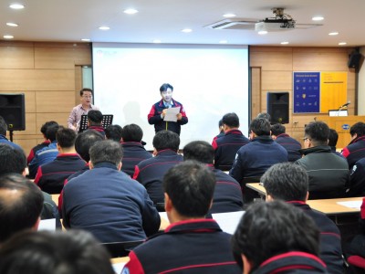 지난 3월16일~17일 직급별 역량교육 '신입사원과정'이 1박2일 일정으로 부산인력개발원에서 실시되었다. 이번 과정은 1년 미만 입사자 총23명을 대상으로 새로운 환경에 대한 변화대응력을 제고하기 위해서 마련되었으며, 회사의 비전을 향해 나아갈 수 있도록 경영현황에 대한 정보를 공유하고, 성과창출을 위한 소통과 협력의 중요성 인식, 창의적 사고와 문제해결능력 함양을 위한 다양한 내용들로 구성되었다. 지난 연말 입사자들의 조기적응을 위해 마련되었던 '사내멘토링 프로그램'에 참여했던 멘토들도 이번 과정에 참여하여 활동결과 및 소감을 함께 나누었다. 특히 최금식 회장은 신입사원들에게 격려의 말씀을 하시며, 다음과 같이 당부하셨다. 첫째 일을 즐기면서 하자. 회사를 위한다는 생각보다는 나와 내 가족을 위해 일한다는, 행복한 마음을 갖고 하자. 둘째 자기계발을 위해 최선을 다하자. 건강관리뿐만 아니라, 최근 플랜트부문에서 요구되는 영어회화 스킬을 높여 스스로 몸값을 높이는데 노력하자. 셋째 퇴사의 주요 이유가 상하,동료간 갈등에서 비롯되는데, 갈등의 대상을 내 사람으로, 내편으로 만들어 슬기롭게 이겨내자. 넷째 회사에 대해 자부심을 가질 수 있는 좋은 회사로 함께 만들어 나가자.