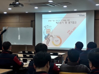 연간 교육일정에 따라 2/24(토) 및 3/10(토) 양일간 전사 원가혁신교육이 본사 교육장에서 실시되었다. [원가혁신을 통한 역량강화를 위한 제조원가혁신교육과정]이라는 주제로 과장~부장 총50명이 참여하였으며, 현대로템 기술교육원이 주관하였다. 실제 현장 문제와 LOSS을 통해 자사 맞춤형 문제해결 역량을 재고하고, 실제 현업 적응력을 극대화하기 위해 조별 활동으로 진행되었으며, 특히 현재 진행되고 있는 우리회사의 원가절감방법에 대하여 토론해 보는 시간을 가짐으로써 우리기업의 현실과 기업환경의 변화, 조선업 산업에서 접근방법과 개선방향에 대해 고민해 보는 시간이 되었다.